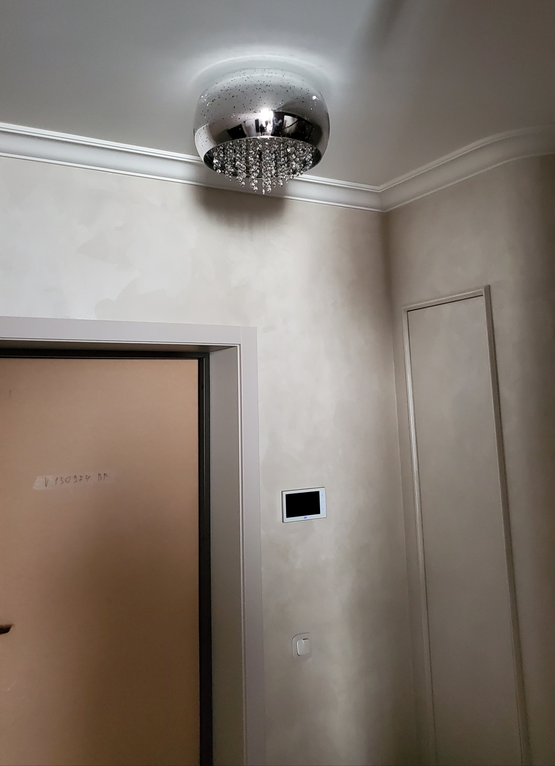 Звёздная модель- потолочный светильник с зеркальным плафоном из коллекции Caelum с прозрачными стеклянными подвесками внутри.